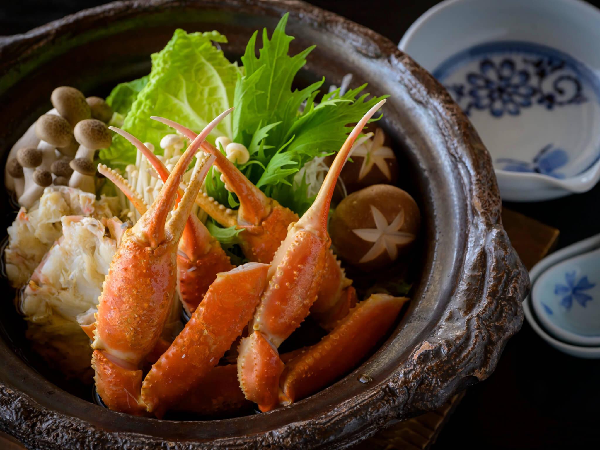 【大橋の活蟹極み会席】お一人二杯タグ付松葉かに尽くし~文化財の宿×極上温泉×本松葉蟹で冬の贅を極む